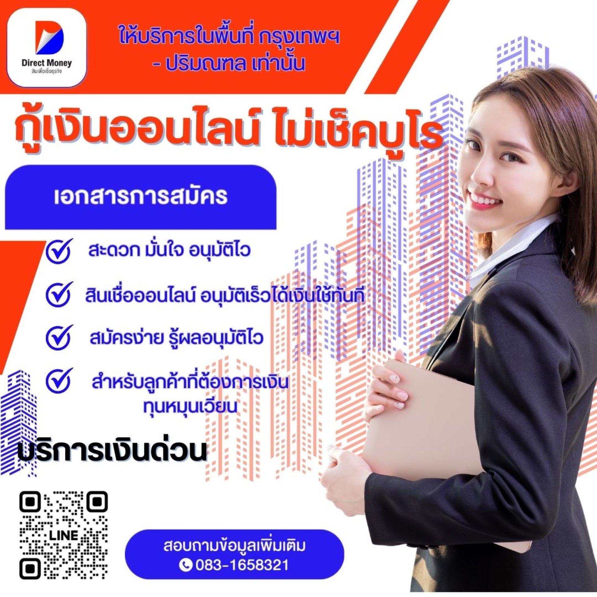 สินเชื่อ SME Direct Money ทางเลือกเงินทุนของเจ้าของธุรกิจที่ต้องเดินหน้าต่อในโลกธุรกิจ ความล่าช้าเพียงไม่กี่วันอาจทำให้คุณพลาดโอกาสสำคัญไม่ว่าจะเป็นออเดอร์ก้อนใหญ่ ต้นทุนวัตถุดิบที่ต้องจ่ายก่อน หรือค่าใช้จ่ายฉุกเฉินที่เลี่ยงไม่ได้