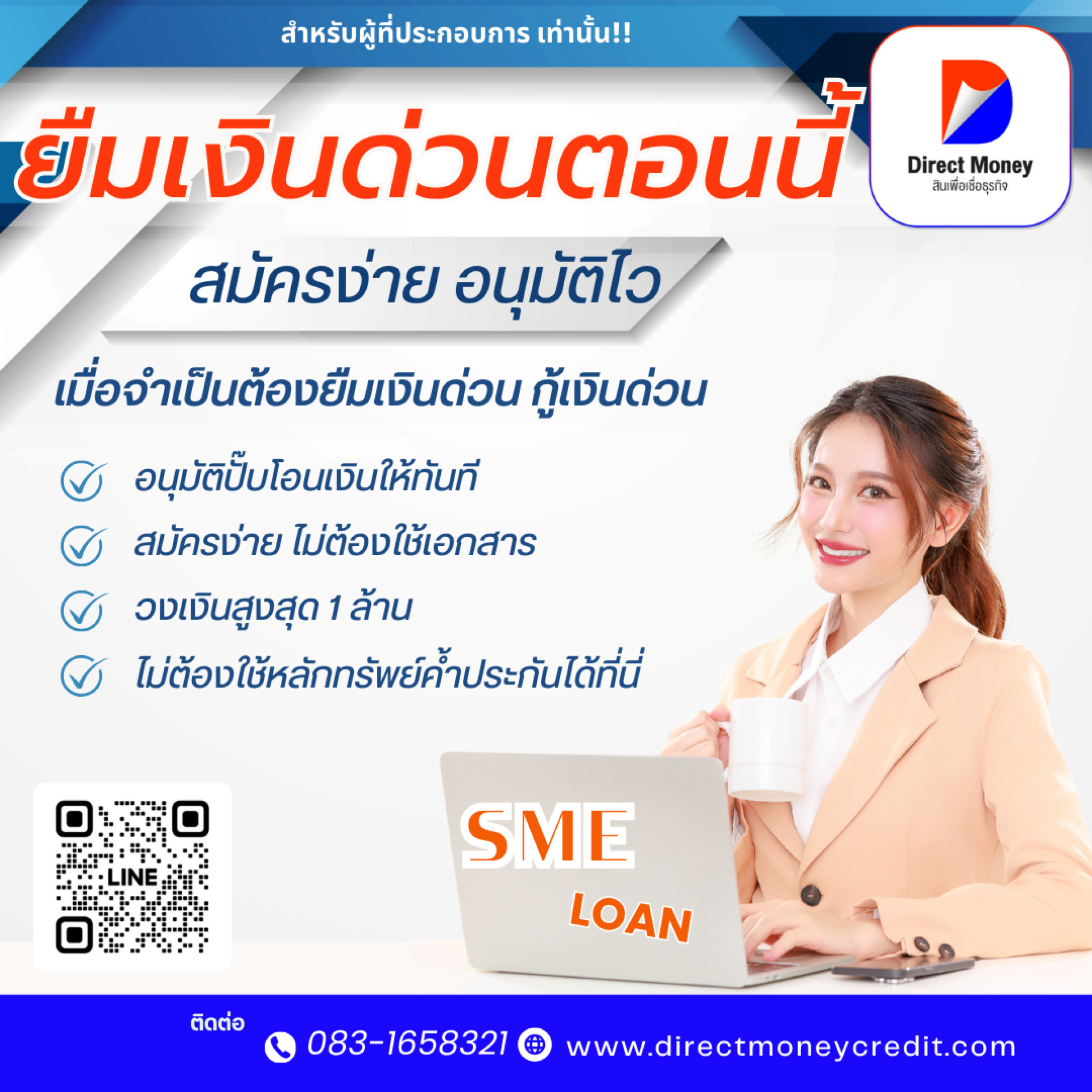 สินเชื่อ SME Direct Money ทางเลือกเงินทุนของเจ้าของธุรกิจที่ต้องเดินหน้าต่อในโลกธุรกิจ ความล่าช้าเพียงไม่กี่วันอาจทำให้คุณพลาดโอกาสสำคัญไม่ว่าจะเป็นออเดอร์ก้อนใหญ่ ต้นทุนวัตถุดิบที่ต้องจ่ายก่อน หรือค่าใช้จ่ายฉุกเฉินที่เลี่ยงไม่ได้