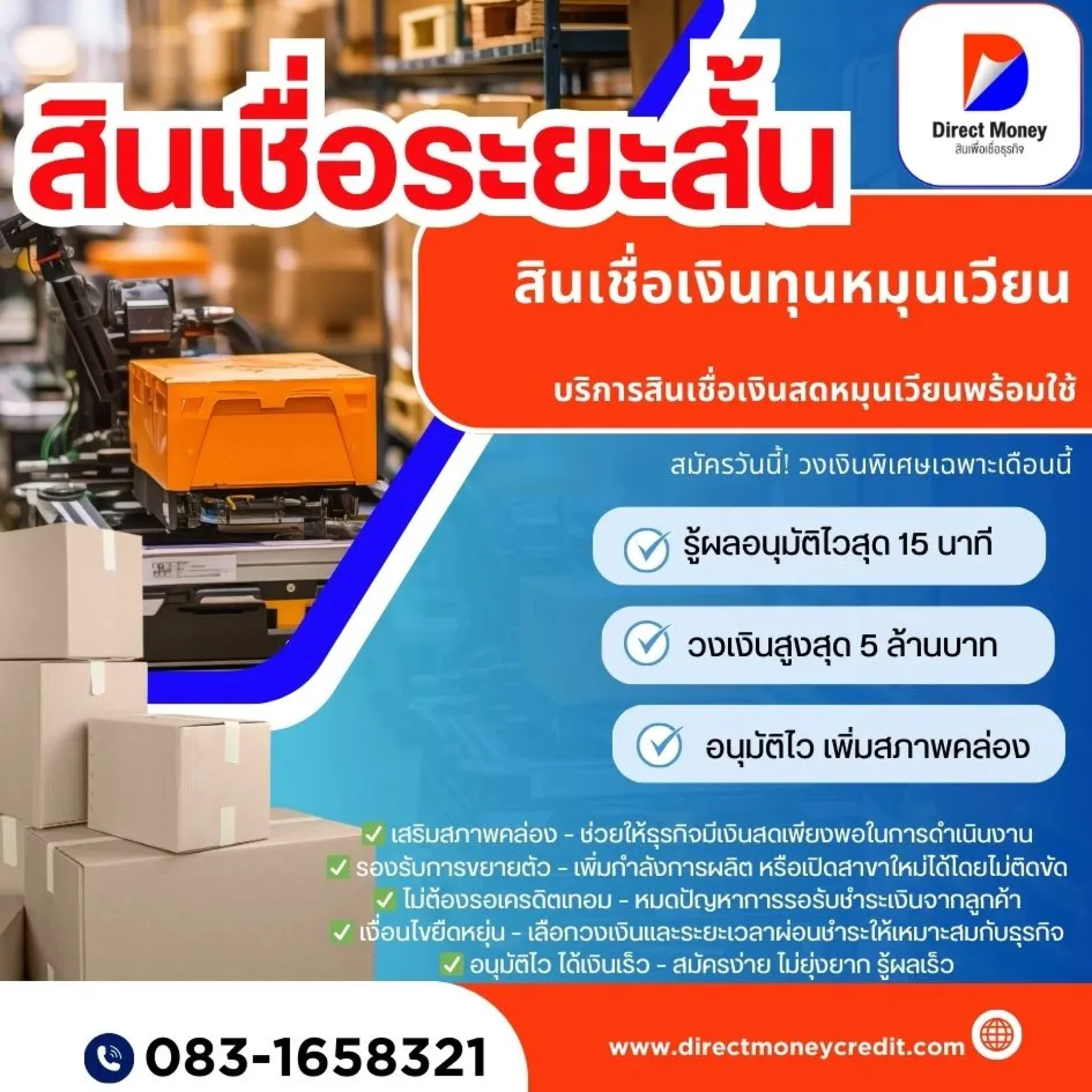 หากคุณกำลังมองหาสินเชื่อระยะสั้นที่อนุมัติไวและเงื่อนไขยืดหยุ่น Direct Money อาจเป็นทางเลือกที่ตอบโจทย์ ลองศึกษารายละเอียดเพิ่มเติมหรือปรึกษาผู้เชี่ยวชาญก่อนตัดสินใจ เพื่อให้การกู้ยืมเป็นไปอย่างราบรื่นและเป็นประโยชน์สูงสุดกับธุรกิจของคุณ