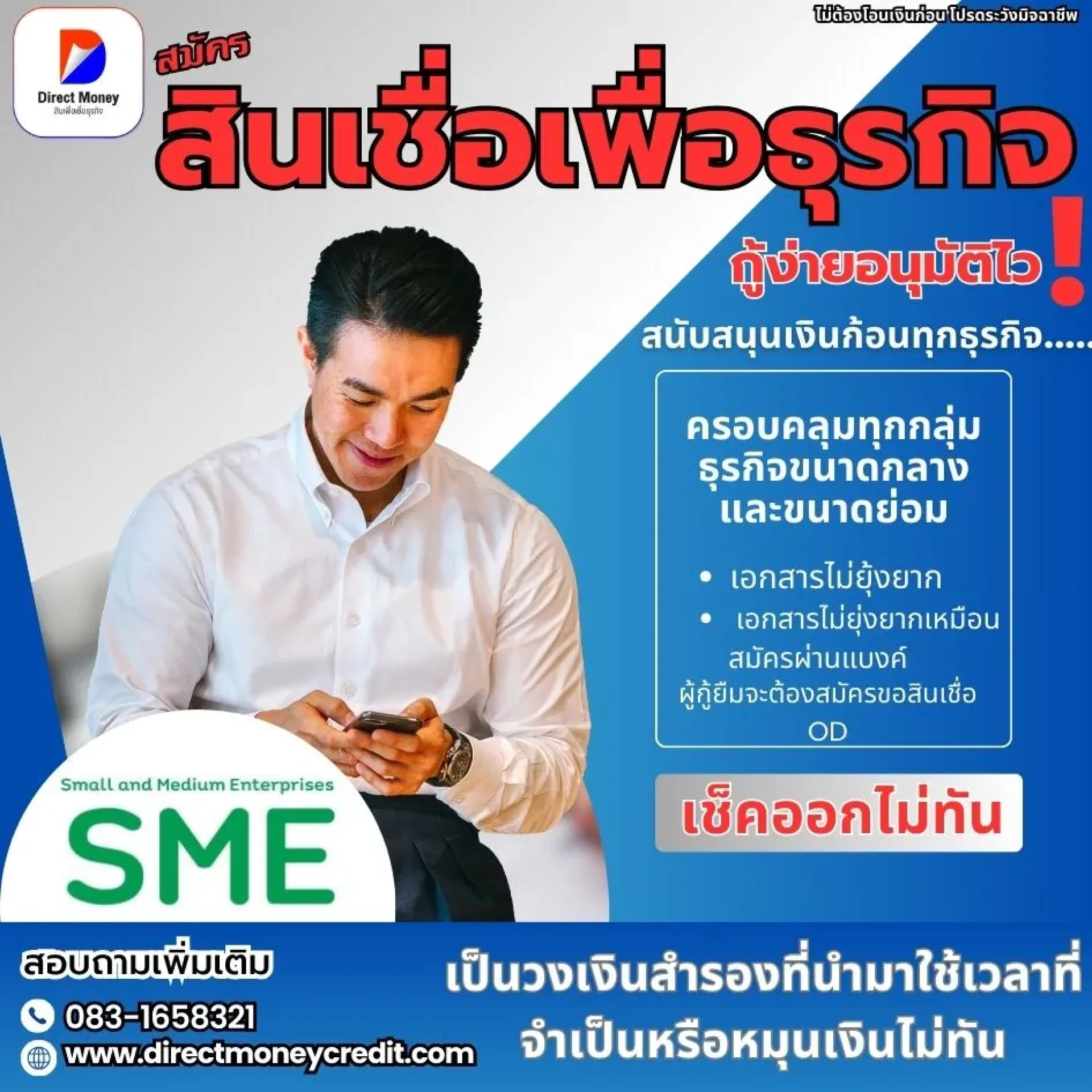 สินเชื่อ SME Direct Money ทางเลือกเงินทุนของเจ้าของธุรกิจที่ต้องเดินหน้าต่อในโลกธุรกิจ ความล่าช้าเพียงไม่กี่วันอาจทำให้คุณพลาดโอกาสสำคัญไม่ว่าจะเป็นออเดอร์ก้อนใหญ่ ต้นทุนวัตถุดิบที่ต้องจ่ายก่อน หรือค่าใช้จ่ายฉุกเฉินที่เลี่ยงไม่ได้