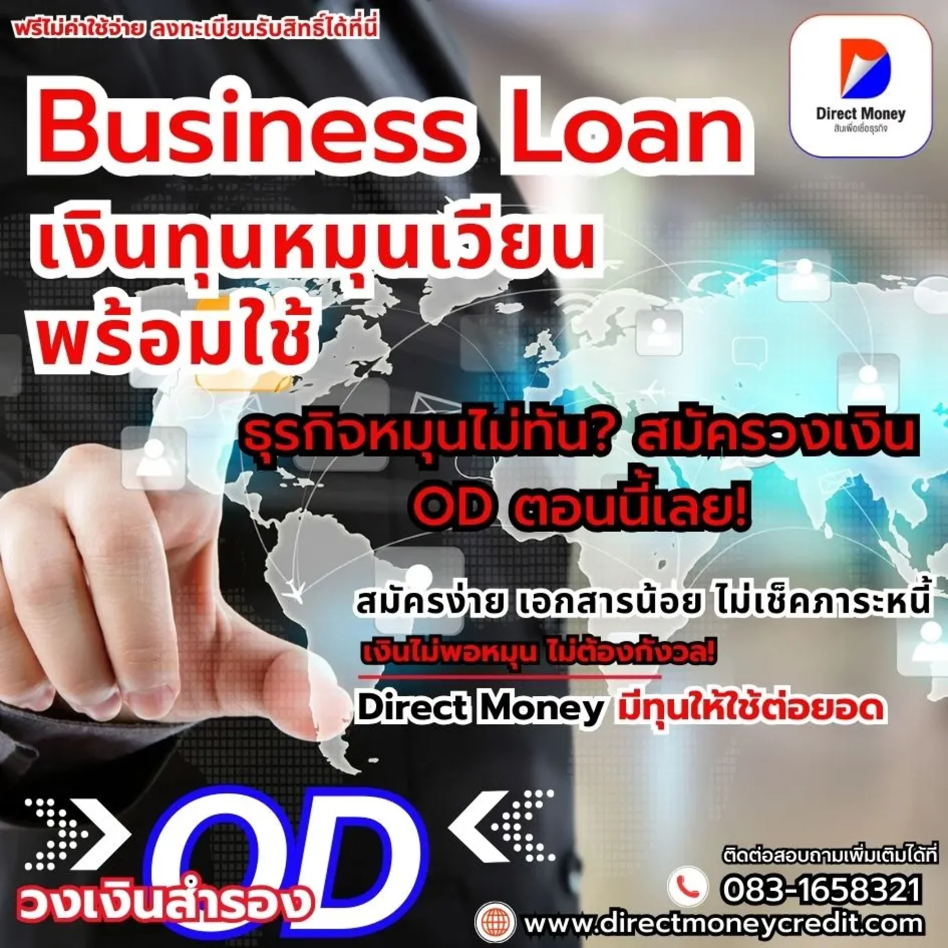วันนี้คุณสามารถเข้าถึงแหล่งเงินทุนทางเลือกได้ง่ายขึ้น ด้วยบริการ Business Loan วงเงิน OD สำรองพร้อมใช้ จาก Direct Money ที่ออกแบบมาเพื่อช่วยให้ธุรกิจ SME และเจ้าของกิจการขนาดเล็กถึงกลาง สามารถเข้าถึงเงินทุนอย่างรวดเร็วและปลอดภัย