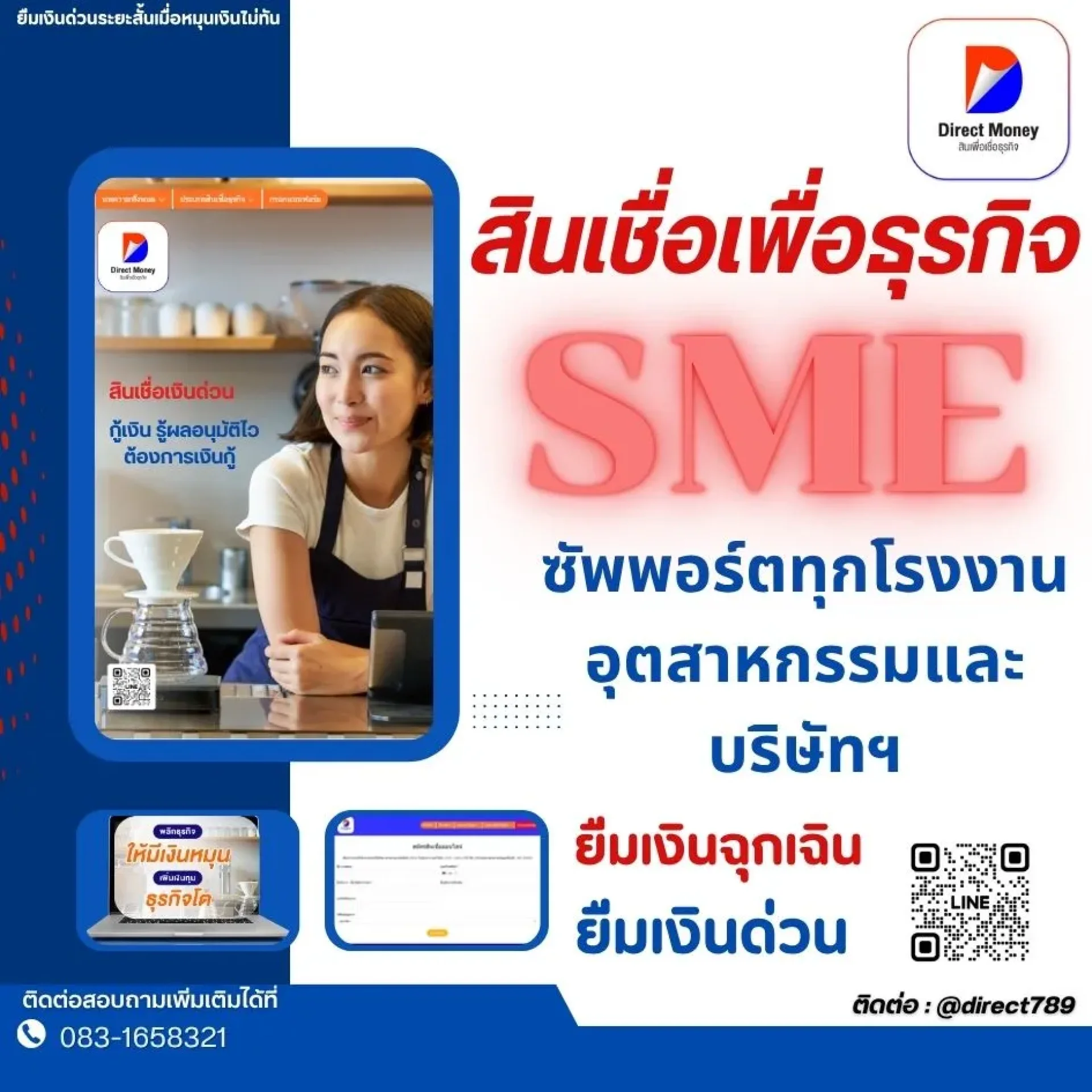 ไม่ว่าคุณจะเป็นร้านกาแฟ SME โรงงานผลิตชิ้นส่วนอุตสาหกรรม หรือบริษัทขนส่งสินค้า Direct Money พร้อมให้คำปรึกษาเฉพาะทางและจัดสินเชื่อให้ตรงตามความต้องการ