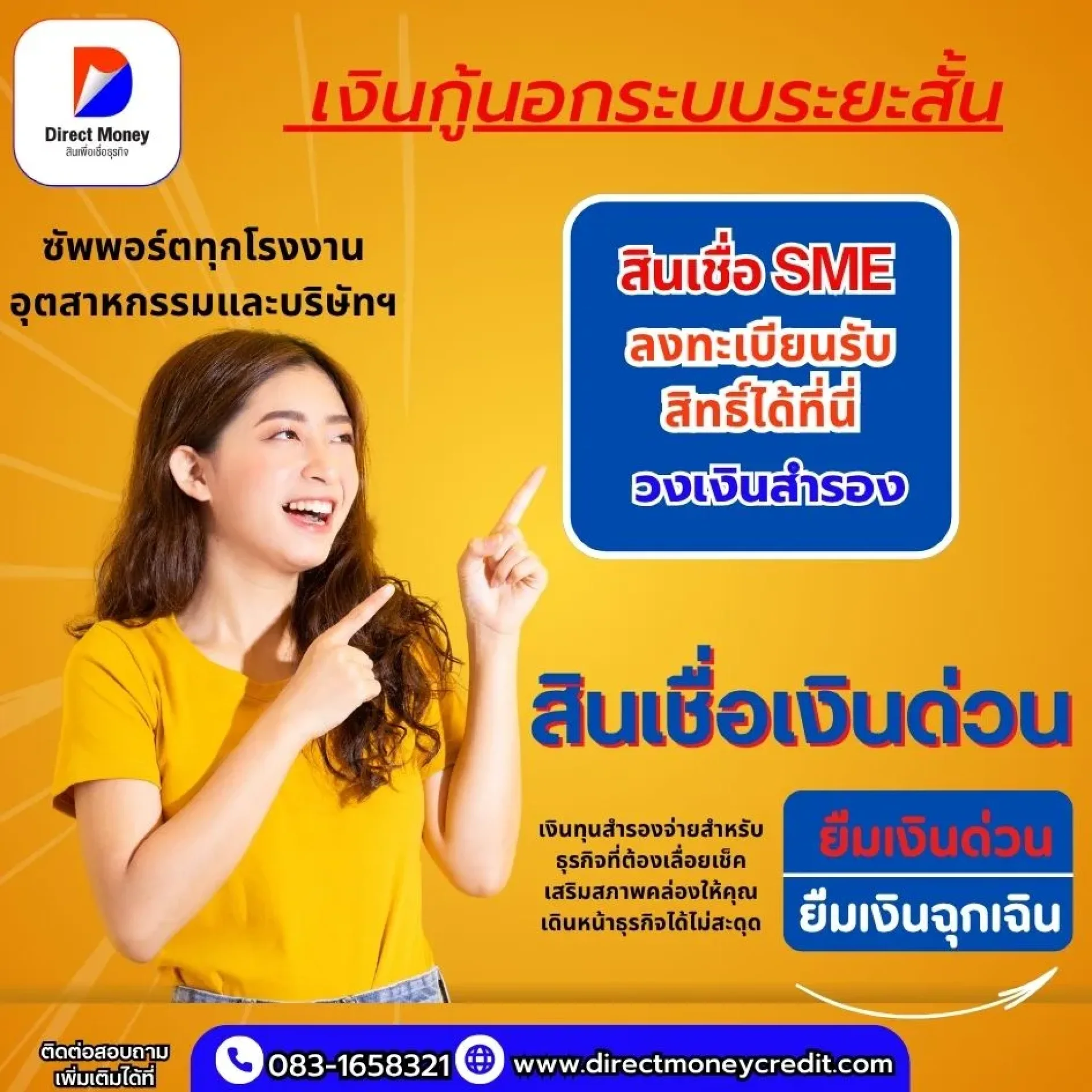 หากคุณคือเจ้าของธุรกิจที่ต้องการเงินทุนระยะสั้น วงเงินฉุกเฉิน หรือกำลังมองหาแหล่งเงินทุนที่ อนุมัติไว ไม่เช็คเครดิต สินเชื่อ SME จาก Direct Money คือตัวเลือกที่น่าสนใจ ลงทะเบียนวันนี้ รับสิทธิ์วงเงินสำรองทันที และก้าวต่อได้อย่างมั่นใจ