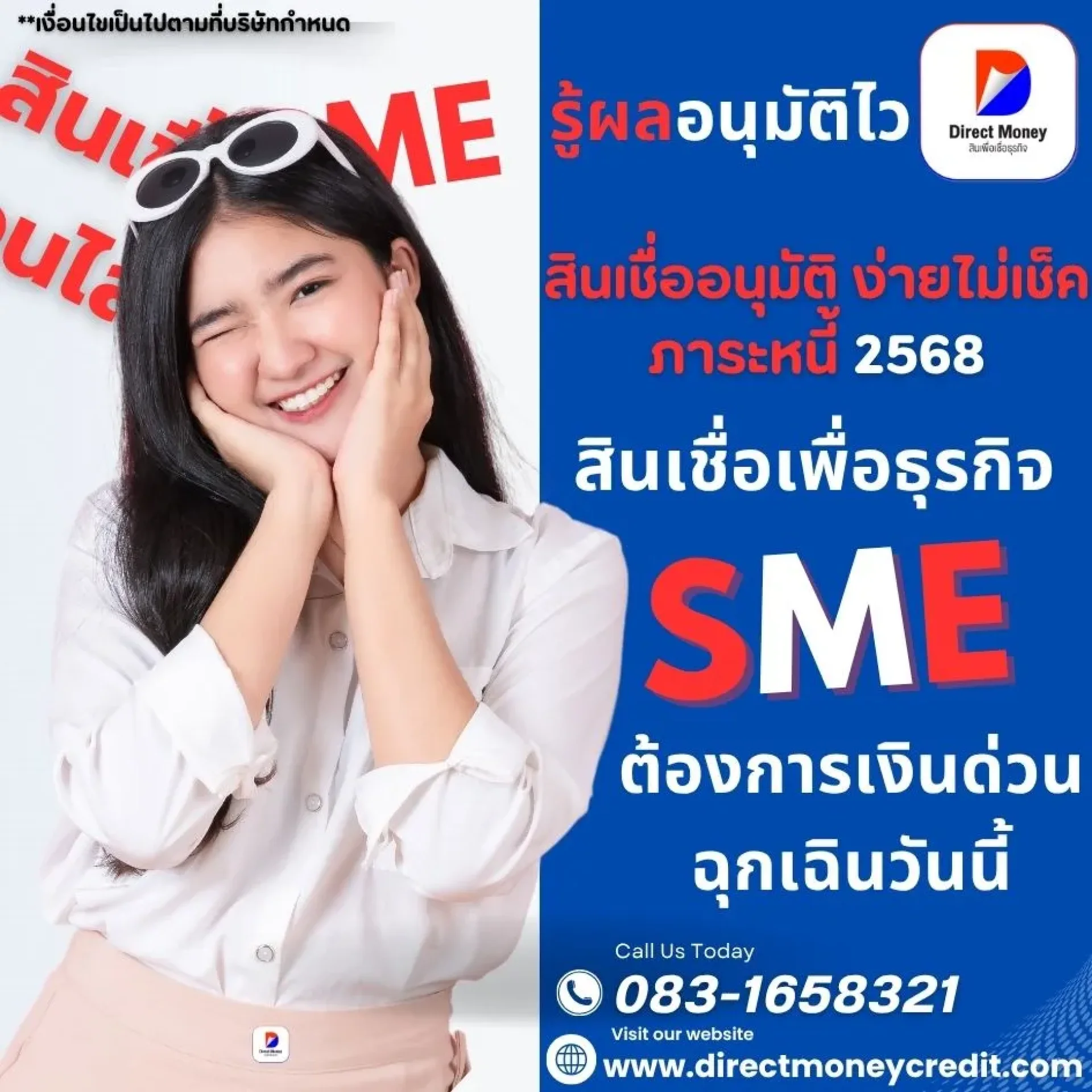 สินเชื่อเพื่อธุรกิจ SME จาก Direct Money เป็นทางออกที่ดีที่สุดสำหรับเจ้าของกิจการที่ต้องการ เงินด่วนฉุกเฉิน โดยไม่ต้องตรวจเครดิต ไม่เสียเวลารออนุมัตินาน และไม่ต้องยื่นเอกสารมากมาย เพียงติดต่อที่เบอร์ 083-1658321 หรือสมัครผ่านเว็บไซต์ www.directmoneycredit.com ก็สามารถเริ่มกระบวนการได้ทันที