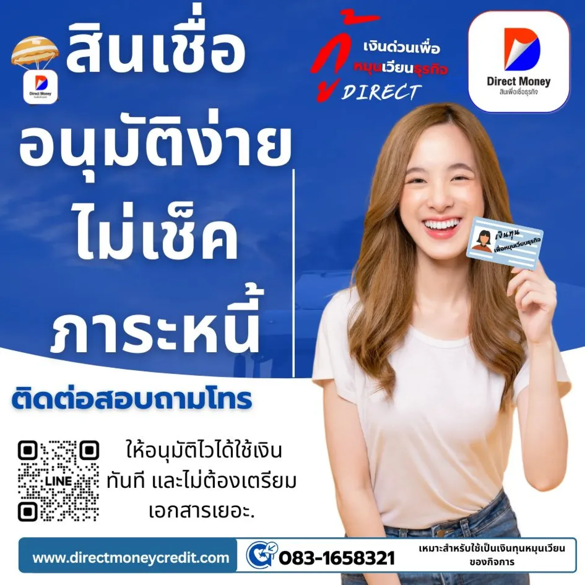 วันนี้มีทางออกใหม่สำหรับเจ้าของกิจการทุกขนาด กับ สินเชื่ออนุมัติง่าย ไม่เช็คภาระหนี้ จาก Direct Money ที่พร้อมช่วยคุณฝ่าวิกฤต และขยายธุรกิจให้เติบโตได้อย่างมั่นคง