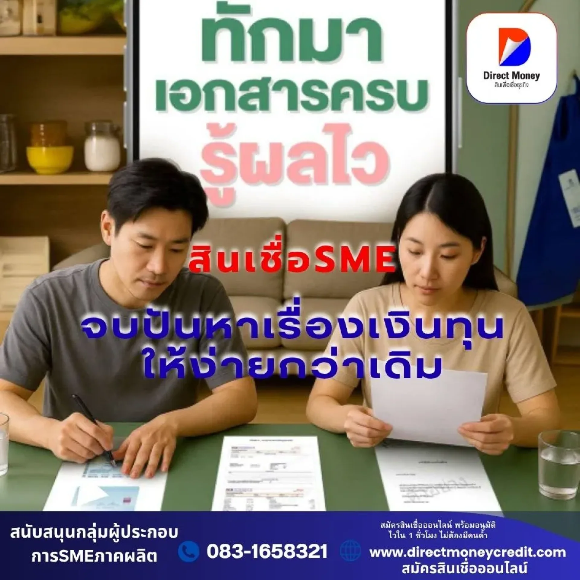สินเชื่อ SME จาก Direct Money วงเงินสูง อนุมัติไว เอกสารครบ รู้ผลเร็ว ไม่ต้องมีหลักทรัพย์ เหมาะสำหรับเจ้าของธุรกิจทุกประเภท โทร 083-1658321