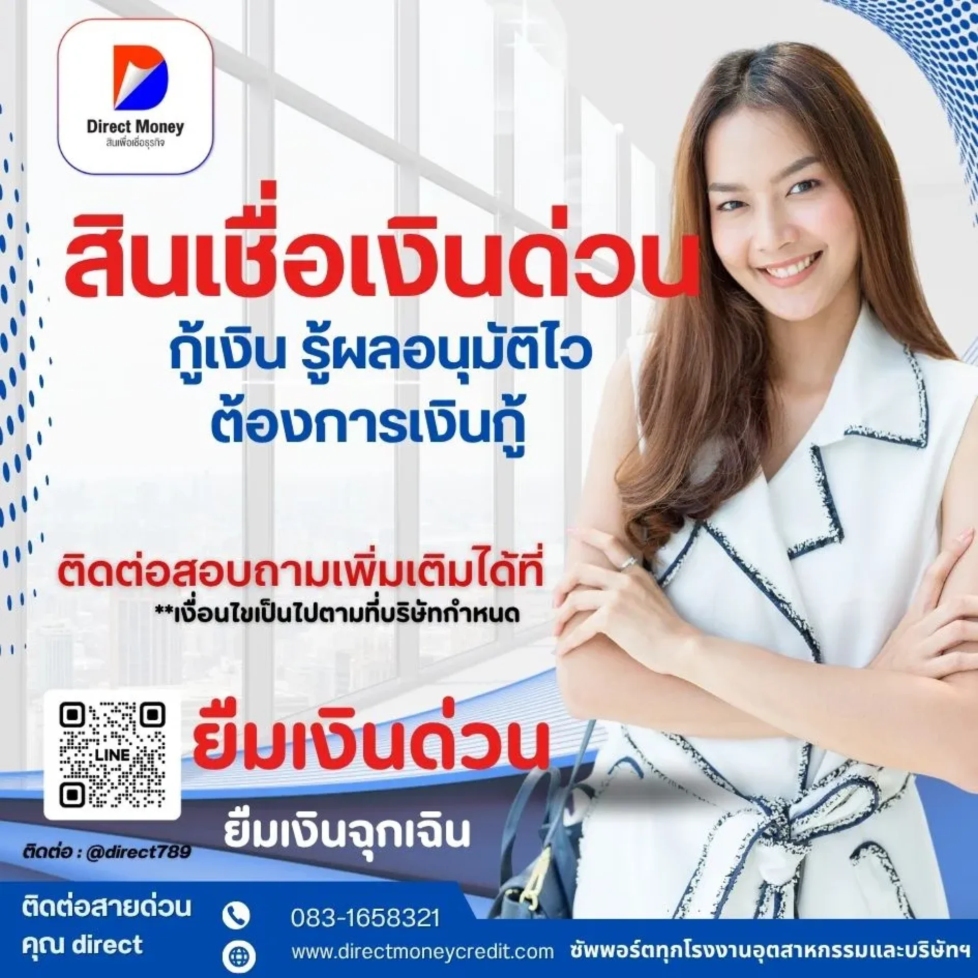 สมัครสินเชื่อเงินด่วน รู้ผลอนุมัติไวภายในวันเดียว ถูกกฎหมาย สมัครง่ายไม่ยุ่งยาก Direct Money ช่วยคุณยืมเงินด่วนถูกกฎหมาย โทร 083-1658321