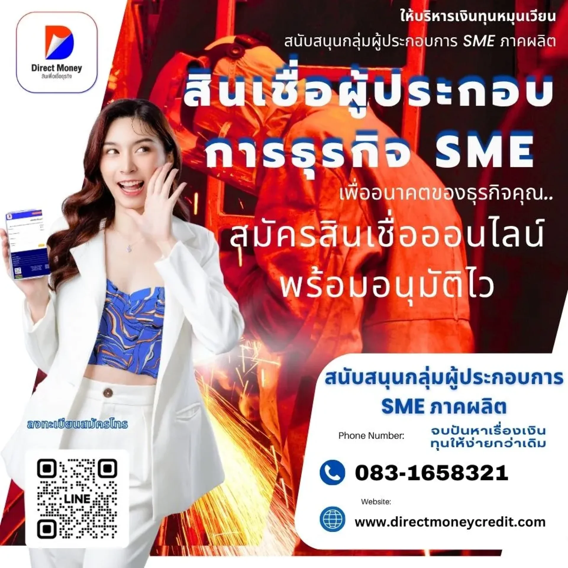 สินเชื่อผู้ประกอบการธุรกิจ SME จาก Direct Money คือแหล่งเงินทุนที่พร้อมช่วยเจ้าของกิจการในภาคผลิตให้เดินหน้าอย่างมั่นคง ด้วยขั้นตอนสมัครง่าย อนุมัติไว และวงเงินสูง เหมาะสำหรับทุกธุรกิจที่ต้องการเสริมสภาพคล่องและเติบโตอย่างต่อเนื่องในปี 2568