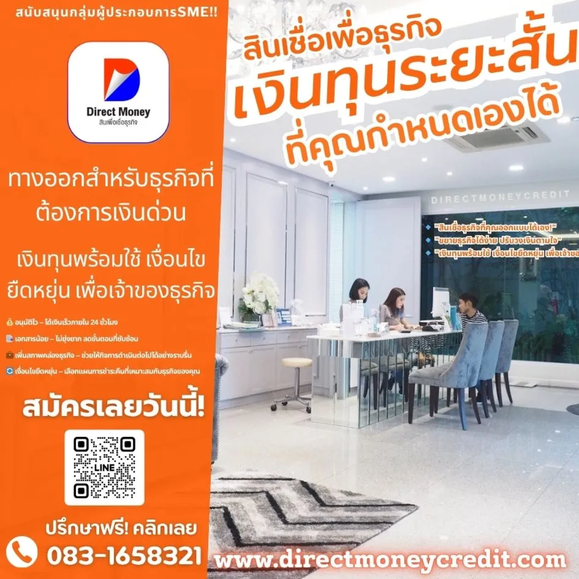 ต้องการเงินทุนด่วน? สมัคร เงินทุนระยะสั้น จาก Direct Money วงเงินสูง อนุมัติไว เงื่อนไขยืดหยุ่น เหมาะกับเจ้าของธุรกิจ SME ทุกประเภท