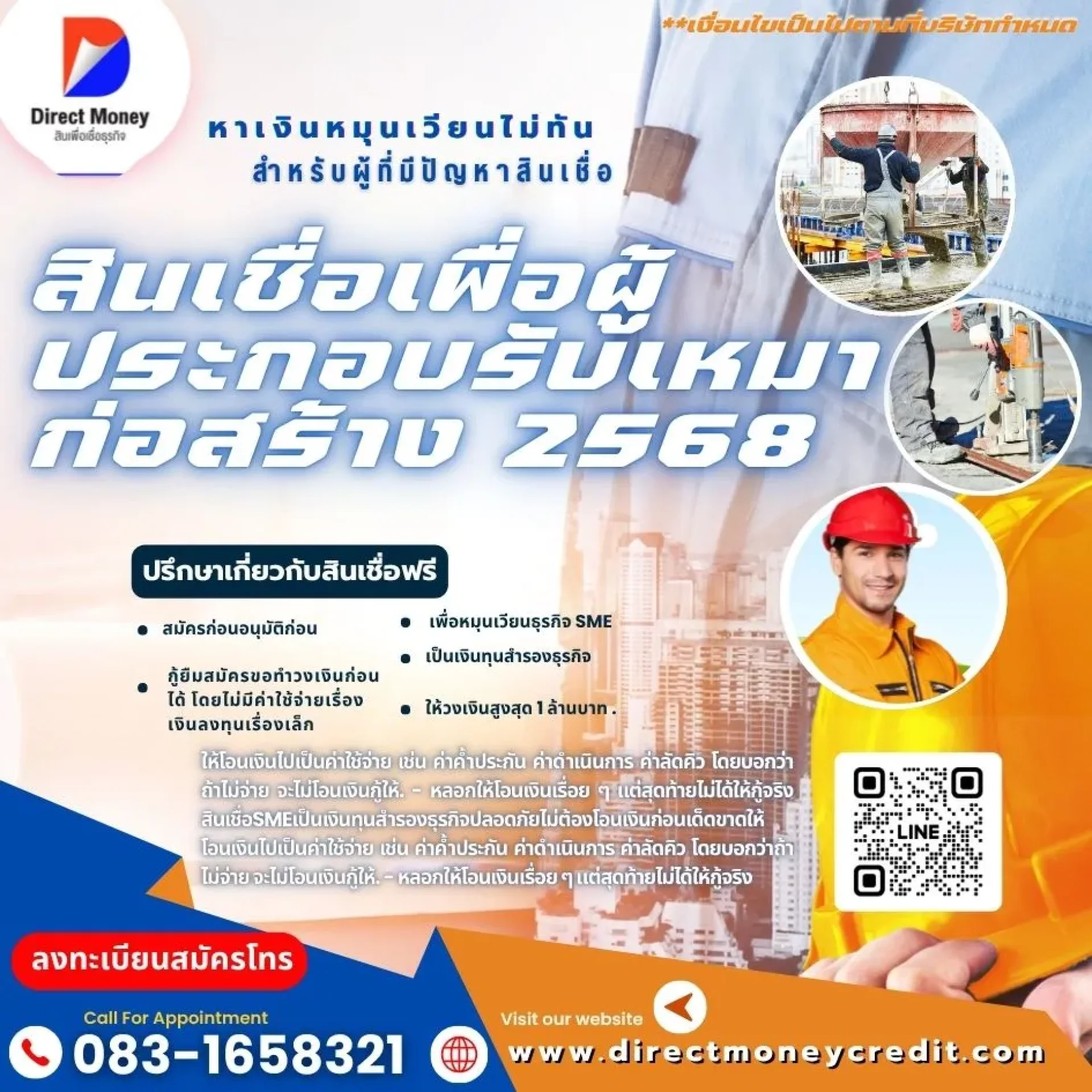 ทางออกที่สำคัญในยุคนี้คือ สินเชื่อเพื่อผู้ประกอบรับเหมาก่อสร้าง 2568 จาก Direct Money แหล่งทุนที่เข้าใจความจำเป็นของธุรกิจก่อสร้างโดยเฉพาะ